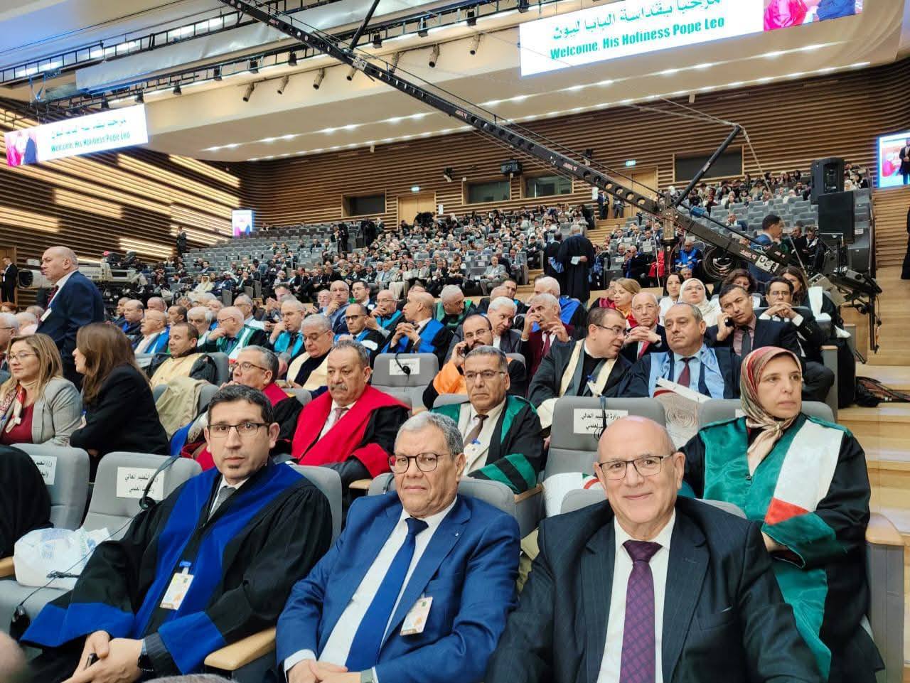14 نيسان/أبريل 2026 الزيارات: 8 مشاركة مدير جامعة بسكرة في مراسم استقبال بابا الفاتيكان جانب من مشاركة السيد مدير جامعة محمد خيضر بسكرة الأستاذ الدكتور زهير ديبي في مراسم استقبال بابا الفاتيكان بالمركز الثقافي لجامع الجزائر، بحضور رئيس الجمهورية وعدد من المسؤولين.