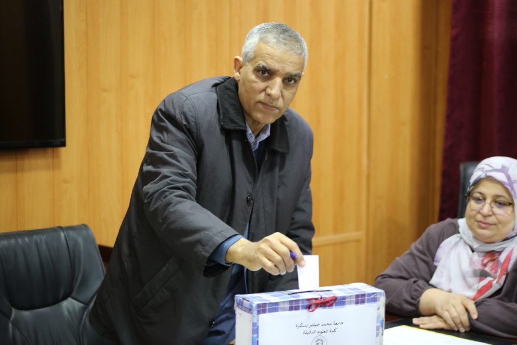 شهدت قاعة الاجتماعات بكلية العلوم الدقيقة بجامعة محمد خيضر بسكرة، صباح يوم الأحد 15 مارس 2026، إجراء الانتخابات الخاصة بعضوية المجلس العلمي للجامعة، في أجواء أكاديمية اتسمت بالجدية والشفافية.